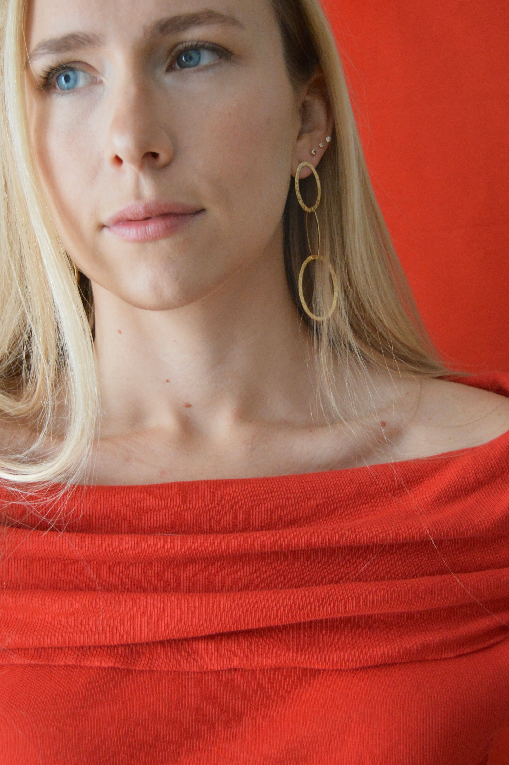Los Pendientes Largos Ovalados combinan geometría suave y elegancia con un diseño minimalista que aporta movimiento y sofisticación a cualquier look.