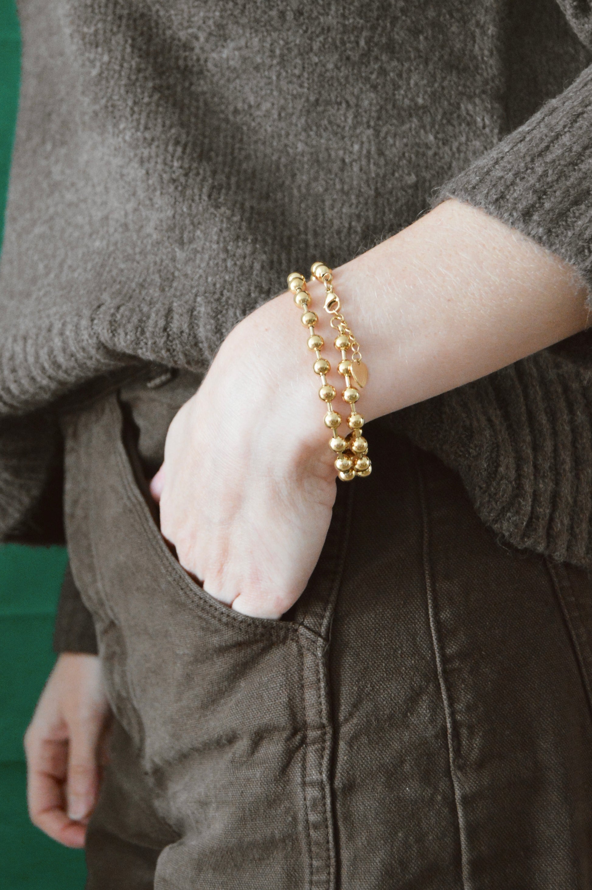 La Pulsera Cadena Bolas combina delicadeza y estilo moderno. Sus pequeñas bolas doradas aportan movimiento y un brillo sutil que eleva cualquier look.