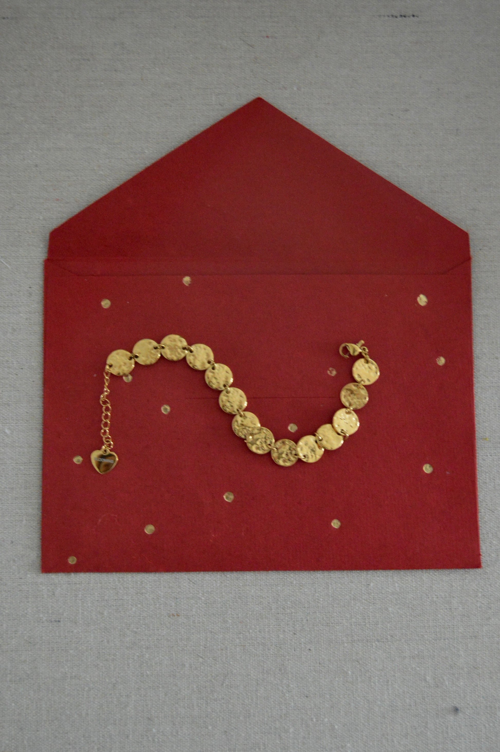 La Pulsera Chapitas Noa está diseñada para iluminar tu look con un toque sutil de elegancia. Sus chapitas doradas aportan movimiento y reflejos delicados que destacan con cualquier outfit.